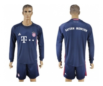 Bayern Munchen Blank Dark Blue Goalkeeper Long Sleeves Soccer Club Jersey