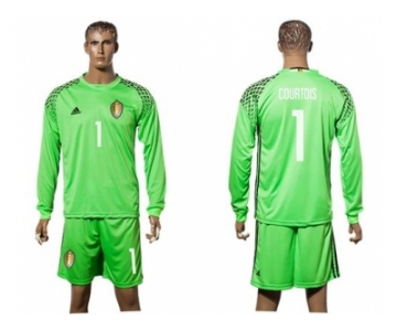 Belgium #1 Courtois Green Goalkeeper Long Sleeves Soccer Country Jersey