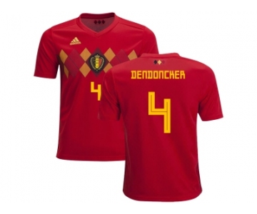 Belgium #4 Dendoncker Home Kid Soccer Country Jersey