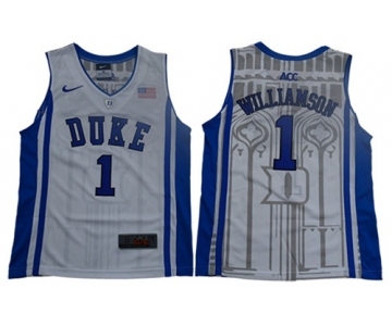 Blue Devils #1 Zion Williamson White Blue Basketball Elite Stitched Youth College Jersey