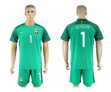 Brazil #1 Alisson Green Goalkeeper Soccer Country Jersey