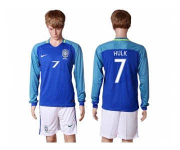 Brazil #7 Hulk Away Long Sleeves Soccer Country Jersey
