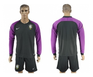 Brazil Blank Black Goalkeeper Long Sleeves Soccer Country Jersey