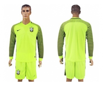 Brazil Blank Shiny Green Long Sleeves Goalkeeper Soccer Country Jersey