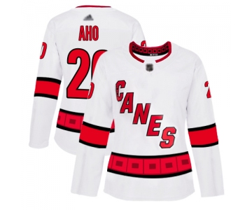 Carolina Hurricanes #20 Sebastian Aho White Road Authentic Women's Stitched Hockey Jersey