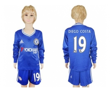Chelsea #19 Diego Costa Home Long Sleeves Kid Soccer Club Jersey
