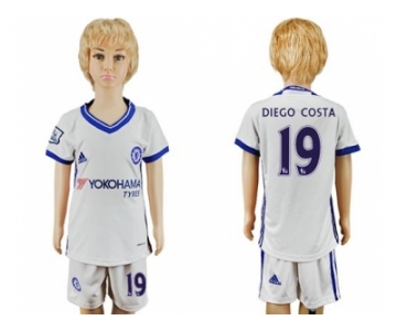 Chelsea #19 Diego Costa White Kid Soccer Club Jersey