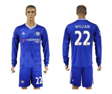 Chelsea #22 Willian Home Long Sleeves Soccer Club Jersey