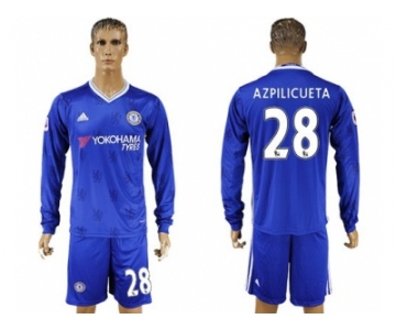 Chelsea #28 Azpilicueta Home Long Sleeves Soccer Club Jersey