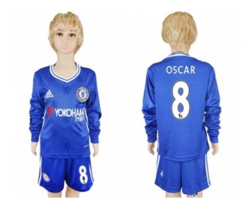 Chelsea #8 Oscar Home Long Sleeves Kid Soccer Club Jersey