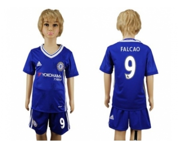 Chelsea #9 Falcao Blue Home Kid Soccer Club Jerseys