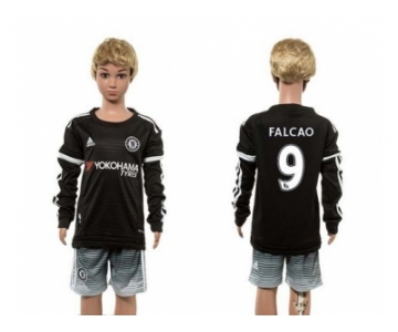 Chelsea #9 Falcao SEC Away Long Sleeves Kid Soccer Club Jersey