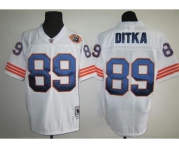 Chicago Bears #89 Mike Ditka White Throwback With Bear Patch Jersey