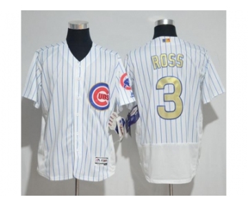 Chicago Cubs #3 David Ross White(Blue Strip) Flexbase Authentic 2017 Gold Program Stitched MLB Jersey