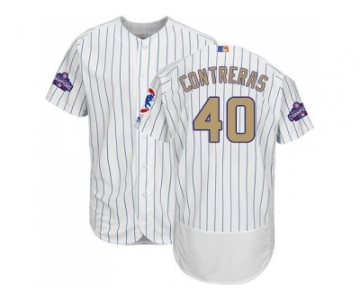 Chicago Cubs #40 Willson Contreras White(Blue Strip) Flexbase Authentic 2017 Gold Program Stitched MLB Jersey