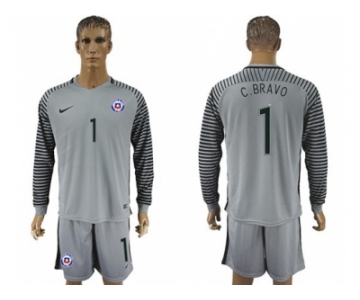 Chile #1 C.Bravo Grey Goalkeeper Long Sleeves Soccer Country Jersey