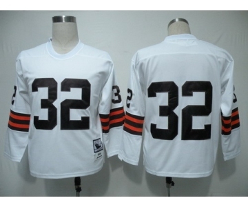 Cleveland Browns #32 Jim Brown White Long-Sleeved Throwback Jersey