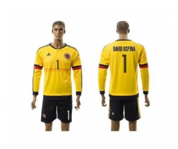 Colombia #1 David Ospina Home Long Sleeves Soccer Country Jersey