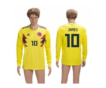 Colombia #10 James Home Long Sleeves Soccer Country Jersey