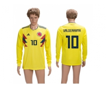 Colombia #10 Valderrama Home Long Sleeves Soccer Country Jersey