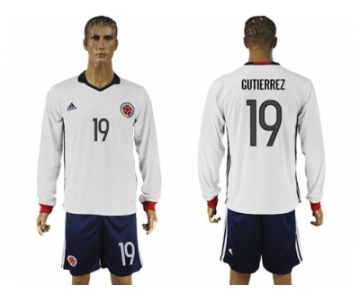 Colombia #19 Gutierrez Away Long Sleeves Soccer Country Jersey