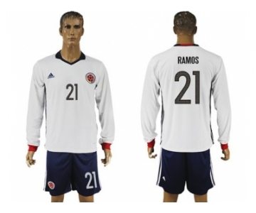 Colombia #21 Ramos Away Long Sleeves Soccer Country Jersey