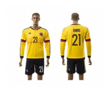 Colombia #21 Ramos Home Long Sleeves Soccer Country Jersey