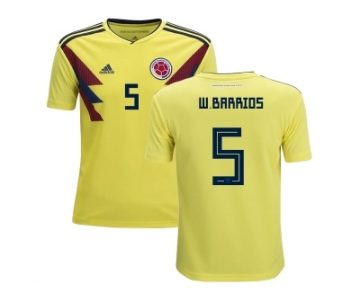 Colombia #5 W.Barrios Home Kid Soccer Country Jersey