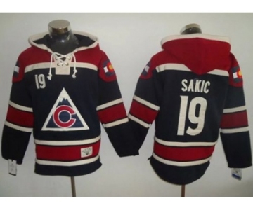 Colorado Avalanche #19 Joe Sakic Navy Blue Sawyer Hooded Sweatshirt Stitched NHL Jersey