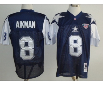 Your Position: Home>NFL M&N Throwback Jerseys>Dallas Cowboys>Dallas Cowboys #8 Troy Aikman Blue Thanksgiving 75TH Throwback Jersey