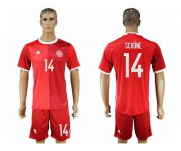Danmark #14 Schone Red Home Soccer Country Jersey