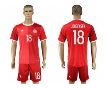 Danmark #18 Jorgensen Red Home Soccer Country Jersey