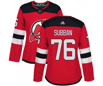 Devils #76 P. K. Subban Red Home Authentic Women's Stitched Hockey Jersey