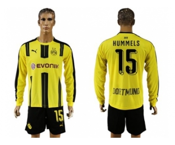 Dortmund #15 Hummels Home Long Sleeves Soccer Club Jersey