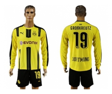 Dortmund #19 Grobkreutz Home Long Sleeves Soccer Club Jersey