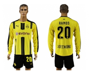 Dortmund #20 Ramos Home Long Sleeves Soccer Club Jersey