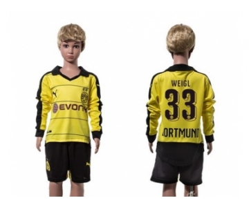 Dortmund #33 Weigl Home Long Sleeves Kid Soccer Club Jersey