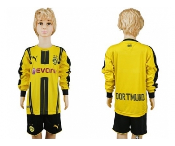 Dortmund Blank Home Long Sleeves Kid Soccer Club Jersey