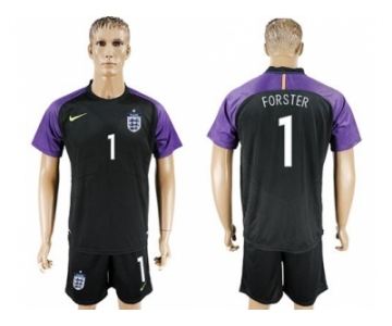 England #1 Forster Black Goalkeeper Soccer Country Jersey