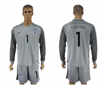 England #1 Forster Grey Goalkeeper Long Sleeves Soccer Country Jersey