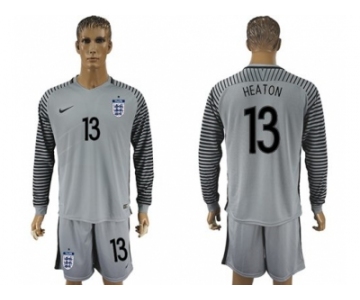 England #13 Heaton Grey Goalkeeper Long Sleeves Soccer Country Jersey