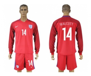 England #14 Walcott Away Long Sleeves Soccer Country Jersey