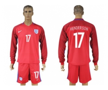 England #17 Henderson Away Long Sleeves Soccer Country Jersey