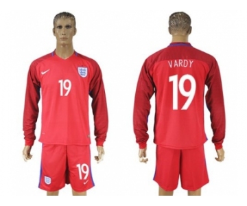England #19 Vardy Away Long Sleeves Soccer Country Jersey