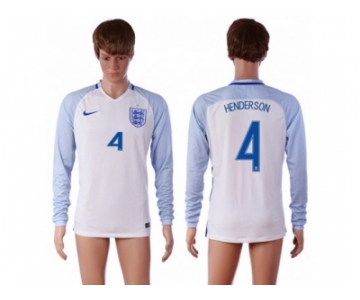 England #4 Henderson Home Long Sleeves Soccer Country Jersey