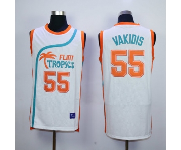 Flint Tropics 55 Vakidis White Semi Pro Movie Stitched Basketball Jersey