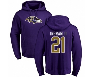Football Baltimore Ravens #21 Mark Ingram II Purple Name & Number Logo Pullover Hoodie