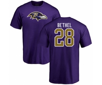 Football Baltimore Ravens #28 Justin Bethel Purple Name & Number Logo T-Shirt