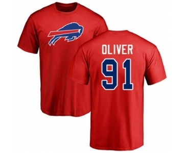 Football Buffalo Bills #91 Ed Oliver Red Name & Number Logo T-Shirt