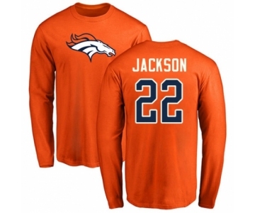 Football Denver Broncos #22 Kareem Jackson Orange Name & Number Logo Long Sleeve T-Shirt